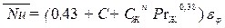 Ж необходимо умножить NuЖ на поправочный коэффициент εl, учитывающий влияние начального участка, где коэффициент теплоотдачи выше. Для достаточно длинных труб (l/d>=50) εl =1.