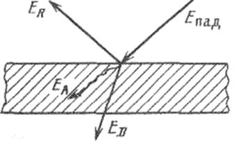 Часть энергии излучения ЕПАД, падающей на тело (рис. 2.6.), поглощается (ЕА), часть отражается (ЕR) и часть проникает сквозь него (ЕD). Таким образом,