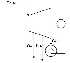 Рис. 3.9. Принципиальная схема турбины с противодавлением (Р)
