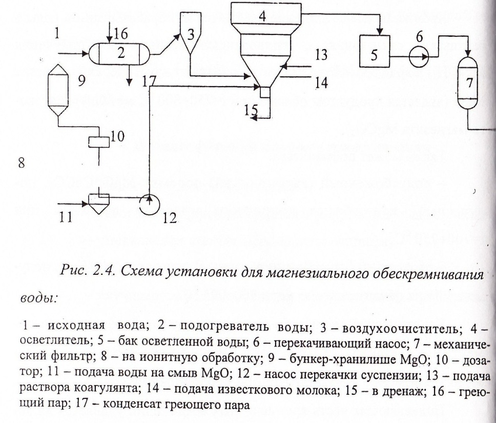 Кремнекислые соединения удаляются из обрабатываемой воды в результате связывания их гидроокисью магния. Для получения