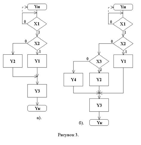 Например, даны две ГСА: Г1 (рис.3а) и Г2 (рис.3б). В этих ГСА встречаются одинаковые операторные и условные вершины. Составим для Г1 матрицу МСА1, а для Г2 матрицу МСА2.