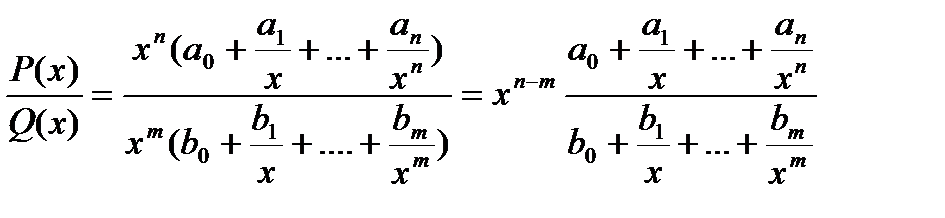 , числитель и знаменатель подпредельной дроби необходимо разделить на высшую степень аргумента и находить далее предел частного.