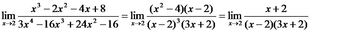 Для нахождения этого предела разложим на множители числитель и знаменатель данной дроби.