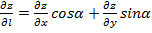 Заметим, что частная производная по x тоже является производной по направлению. Это направление определяется равенствами: cosa = 1; sina = 0. Аналогично частная производная по y — это производная по направлению, которое можно задать условиями cosa = 0; sina = 1.