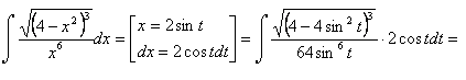 Несмотря на возможность вычисления такого интеграла с помощью универсальной тригонометрической подстановки, рациональнее применить подстановку t = sinx.