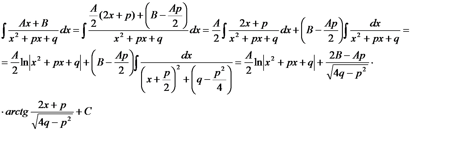 Первые два типа интегралов от элементарных дробей довольно просто приводятся к табличным подстановкой t = ax + b.