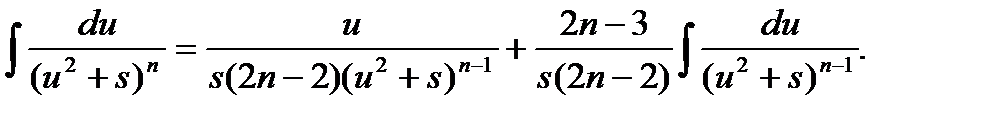 В полученном равенстве первый интеграл с помощью подстановки t = u2 + s приводится к табличному