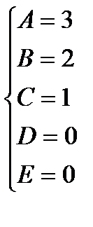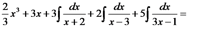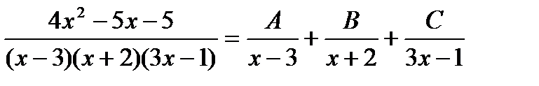 Для того, чтобы избежать при нахождении неопределенных коэффициентов раскрытия скобок, группировки и решения системы уравнений (которая в некоторых случаях может оказаться достаточно большой) применяют так называемый метод произвольных значений. Суть метода состоит в том, что в полученное выше выражение подставляются поочередно несколько (по числу неопределенных коэффициентов) произвольных значений х. Для упрощения вычислений принято в качестве произвольных значений принимать точки, при которых знаменатель дроби равен нулю, т.е. в нашем случае – 3, -2, 1/3. Получаем: