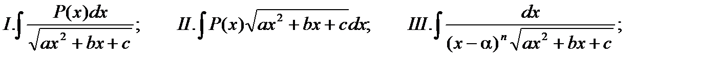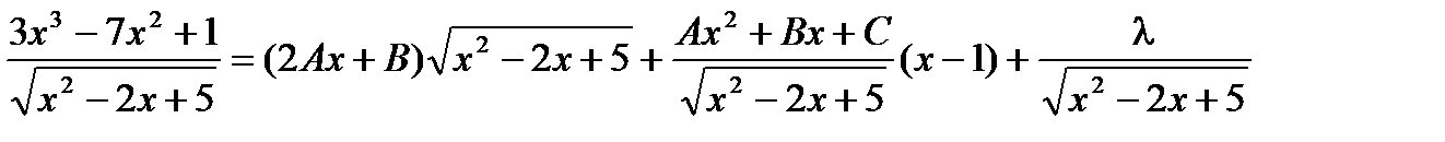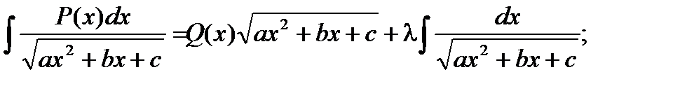 Данный метод выгодно применять, если степень многочлена Р(х) больше единицы. В противном случае можно успешно использовать методы интегрирования рациональных дробей, рассмотренные выше, т.к. линейная функция является производной подкоренного выражения.