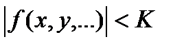 Свойство. Функция f(x, y, …), непрерывная в замкнутой ограниченной области D, ограничена в этой области, если существует такое число К, что для всех точек области верно неравенство