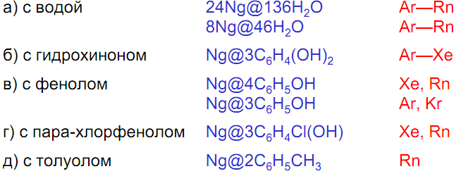 Клатраты построены по типу «гость-хозяин». Ng – гость, заключенный в решетку хозяина, несвязанный с ним ковалентными связями.
