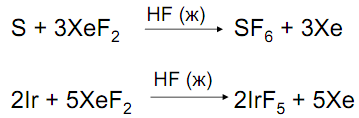 Гидролиз: 2XeF2 + 2H2O = 2Xe + 4HF + O2 медленно