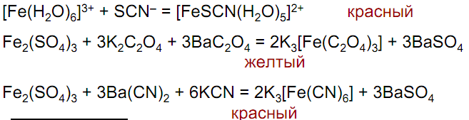 2Fe(OH)3 + 3H2SO4 = Fe2(SO4)3 + 3H2O коричневый