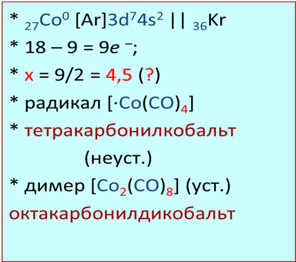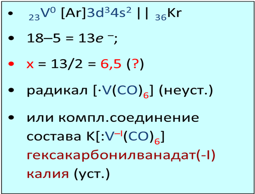 Другая трактовка: В комплексных соединениях центральный атом металла будет окружать себя таким числом лигандов, чтобы число электронов во внешней электронной оболочке было равно 18.