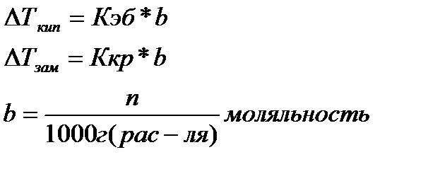 2 закон Рауля. Понижение температуры замерзания и повышение температуры кипения растворов по сравнению с таковыми для чистого растворителя пропорциональны моляльной концентрации растворенного вещества: