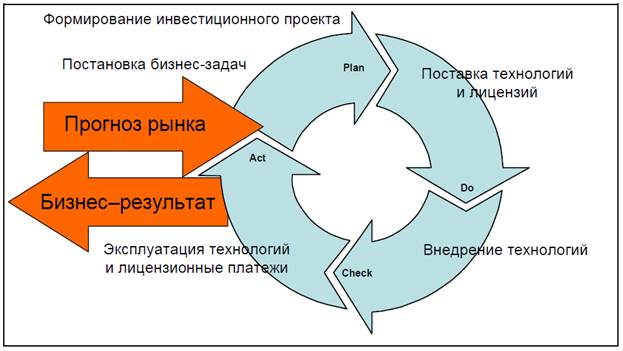 Поэтому инвестиционный проект, формирующий ответную реакцию на требования рынка, должен быть инновационным и включать в себя обзаведение новыми технологиями, т.е. приобретением прав на использование новых научно-технических решений. Эти права могут быть приобретены в форме лицензий на использование изобретений, могут быть получены в результате собственных или заказных исследований и разработок или могут быть получены путем покупки высокотехнологичных инновационных предприятий. В то же время, как видно из рис. 1.2, инвестиционный проект должен и предусматривать действия по внедрению, т.е. подготовке технологий к эксплуатации.