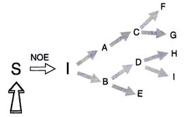 Рис.1.63.Схема процесу спінової дифузії в якому первинний S-I ЯЕО ефективно передається на сусідні ядра і поширюється по всій молекулі
