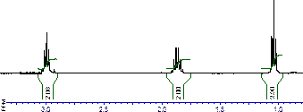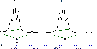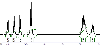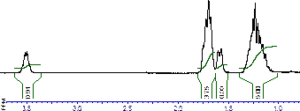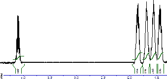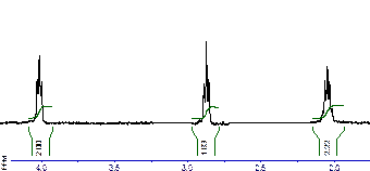 | Слабопольний триплет може мати хімічний зсув до 4 м.ч., 3J= 7,5-8,5 Гц | |