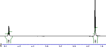 | Слабкопольний сигнал відповідає фрагменту СНХ. Його хімічний зсув може бути 4-5,5 м.ч. | |