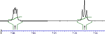 | Часто дублети знаходяться у більш слабкому полі, ніж триплети. Діапазон знаходження сигналів 6-8,5 м.ч., 3J= 7,5-8,5 Гц | |