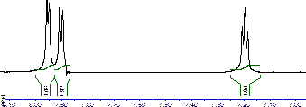 | В залежності від Х та У, положення дублетів можуть знаходитись в діапазоні 6-8,5 м.ч., 3J= 7,5-8,5 Гц | |