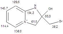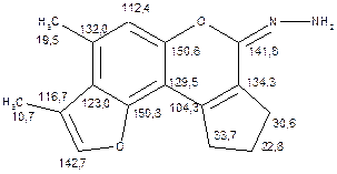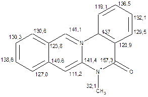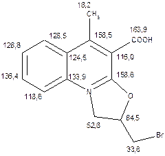 Таблиця 3.14. Положення в спектрі атомів вуглецю гетероциклічних фрагментів