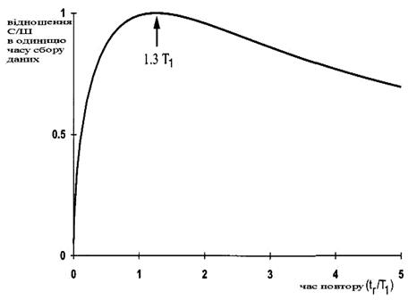 Рис. 4.4. Оптимальний час між імпульсами при використанні 90° імпульсу