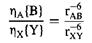 Тут константа пропорційності, крім відомих фізичних констант, включає час кореляції молекул, tc, а {B} означає, що сигнал інвертується, а не насичується. У принципі, якщо відома tc, то можна прямо вимірювати величину rAB. Хоча на підставі релаксаційних вимірювань час кореляції і можна визначити, однак на практиці він використовується рідко. Частіше відому міжатомну відстань використовують як стандарт для вимірювання невідомої відстані. Якщо вимірювати ЯЕО між ядрами X і Y, відстань між якими відома, то можна записати: