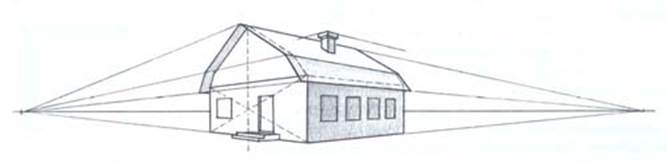 Необходимо отметить одно важное правило: горизонтальные параллельные линии на картинной плоскости имеют одну точку схода на линии горизонта. При наблюдении вид предмета в значительной степени зависит от выбора точки зрения (слева, справа, сверху, снизу). Следовательно, значительную роль при наблюдении играет высота точки зрения - горизонт. Представим такую картину: море или степь, где горизонты четко разграничиваются, хотя это кажущаяся разграничительная линия моря и неба, земли и неба.