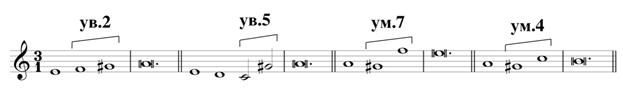 2) на увеличенные и уменьшенные интервалы как диатонические (пример №9), так и хроматические