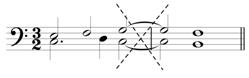 Совершенные консонансы появлялись на сильном времени только в качестве начального и заключительного созвучия произведения. На слабых долях такта совершенные консонансы использовались более свободно. Однако не допускалось: