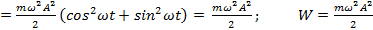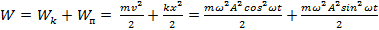 Полная энергия гармонического колебательного движения. При гармоническом колебании происходят периодические взаимные превращения кинетической WK и потенциальной Wn энергии, обусловленной действием квазиупругой силы. Из этих энергий складывается полная энергия W колебательной системы: