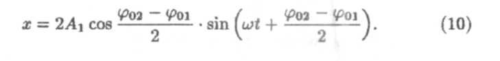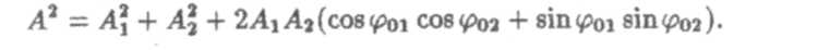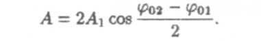 При φ02 - φ01=0, 2π, 4π…2nπ, где п = 0,1,2,3,.. А= 2A1 — амплитуда максимальна. При φ02 - φ01— π, 3π, 5π…(2n+1)n A =0 — колебания взаимно гасятся.