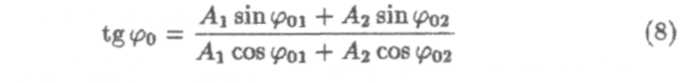 — формула амплитуды результирующего колебания. Поделив равенство (6) на равенство (5), получим