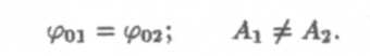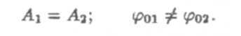 б) начальные фазы различаются на ж/2, амплитуды различные