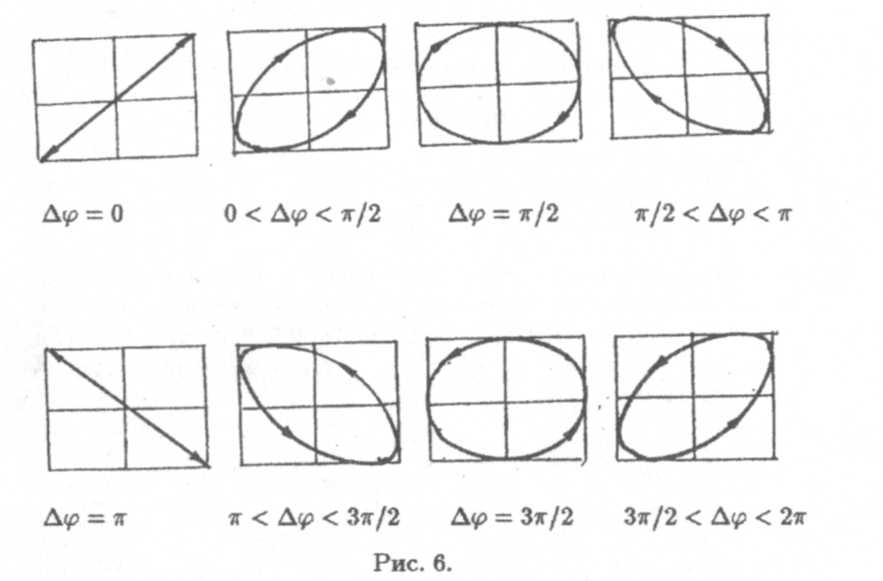 Зависимость характера результирующей траектории от разности фаз ∆φпредставлена на рис. 6.