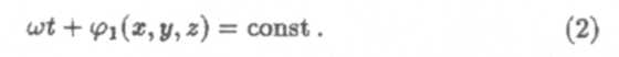 Здесь з — величина, колебания которой мы рассматриваем (например, колебания давления для звуковой волны или колебания напряженности электрического поля в электромагнитной волне и т.п.); А — амплитуда колебаний, φ(t, у, z)= ωt + φ1(х, у, z) — фаза колебаний. В случае произвольной зависимости от времени волновое возмущение можно представить как суперпозицию гармонических колебаний.