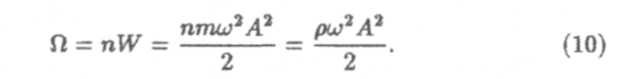 где m — масса атома, vmax— амплитуда скорости при колебательном движении атома, ω — циклическая частота колебаний, А— амплитуда смещения. Если концентрация атомов равна n, то очевидно, что полная энергия, связанная с колебательным движением частиц среды, заключенная в единице объема, равна: