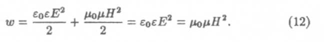 Электромагнитные волны. В этом случае плотность энергии электромагнитного поля, связанного с волной, определяется по формуле