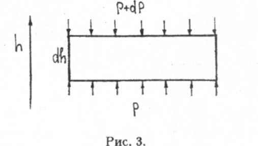 Ось h направим вертикально вверх от поверхности Земли. Площадь основания цилиндра обозначим через S. Пусть p+dp — это