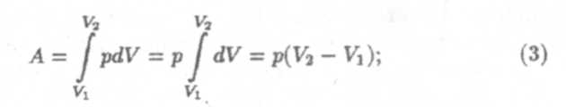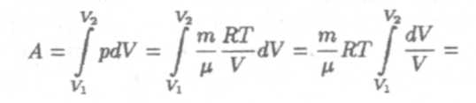 Из полученной формулы видно, что при расширении газа (dV > 0) работа положительна (dA > 0), т.е. газ совершает работу над внешними телами, а при сжатии газа (dV < 0) работа отрицательна (dA < 0), т.е. работа совершается над газом. Чтобы найти полную работу газа при расширении от объема V1 до объема V2, выражение (1) надо проинтегрировать