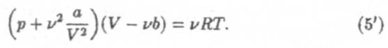 Если υ молей газа занимают объем V, то молярный объем этого газа Vμ = V/υ. Подстановка в (5) дает уравнение Ван-дер-Ваальса для произвольного количества газа: