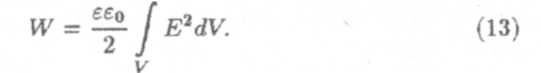 Итак, энергия взаимодействия системы зарядов равна умноженной на объем плотности энергии создаваемого ими поля. Хотя формула (12) получена для плоского конденсатора, она имеет более широкий смысл.