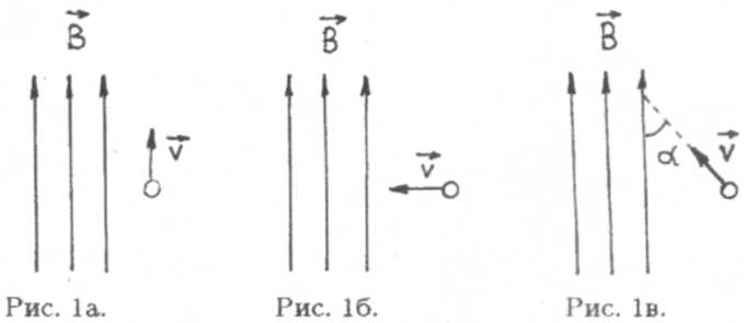 В первом случае v || В(рис. 1а) — сила, действующая на заряд, будет равна нулю. Поэтому заряд будет двигаться прямолинейно и равномерно вдоль силовой линии магнитного поля.