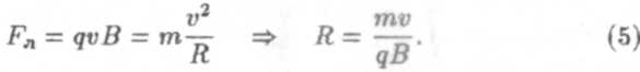 Радиус окружности определяется по формуле (5); он будет тем меньше, чем больше индукция магнитного поля В. Таким образом, как показывает формула (5), движение заряда под действием магнитного поля становится ограниченным в пространстве. На этом принципе основано удержание высокотемпературной плазмы в установках для термоядерного синтеза. В таких установках используются сверхсильные магнитные поля с индукцией ~ 50 Тл. Период обращения электрона вокруг силовой линии равен