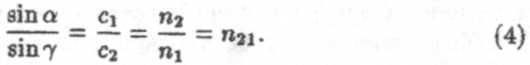 окажется равным 90°, т.е. преломленный луч будет скользить вдоль границы раздела сред (рис. 2).