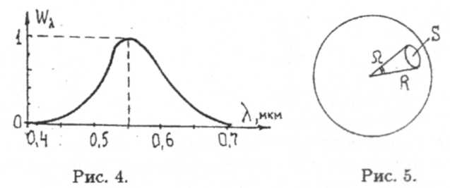 Функция видности Vλ служит мерой спектральной чувствительности глаза. Для λмакс Vλ= 1 (рис. 4).