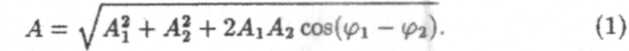 Интенсивность результирующей волны / пропорциональна квадрату амплитуды колебаний, т.е. I ~ А2. Напомним, что ин- . тенсивность показывает, какая энергия переносится за единицу у времени через единицу площади в направлении, перпендикулярном направлению распространения волны. Большинство измерительных приборов, а также глаз человека оценивают энергетические характеристики световых волн, а не их амплитуду. Интенсивность I результирующего колебания связана с интенсивностями I1и I2, созданными источниками S1 и S2, следующим образом: