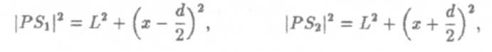 откуда |РS2|2 - |PS1|2 = 2xd. Учитывая, что |РS2|2 - |PS1|2 ≈ 2L, имеем