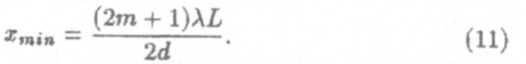 Число m является номером интерференционного максимума (минимума). Расстояние между соседними максимумами (минимумами), называемое шириной интерференционной полосы, равно